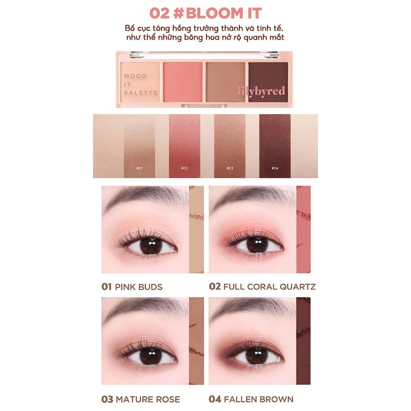 chất phấn mềm mịn, có khả năng vừa có thể làm phấn mắt, vừa làm tạo khối, má hồng vô cùng tiện lợi cùng bảng màu siêu xinh giúp bạn tự tin phối hợp nhiều phong cách trang điểm khác nhau, mang đến sự mới mẻ, cá tính và tươi trẻ, năng động cho bạn.