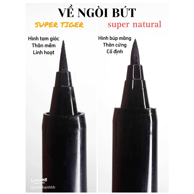 ✔ Điều đặc biệt ở bút kẻ mắt SuperTiger Eyeliner chính là thân bút được thiết kế nhưng một cây bút máy, kết cấu có hệ thống bình mực trải dài giữa thân bút, để mực luôn được phân phối đều cho đầu bút không bao giờ bị khô. Đầu bút được thiết kế khác lạ với những bút kẻ mắt thông thường chính là đầu bút dạng mũ lưỡi trai đôi, để mực ra đều và không khô đầu bút.