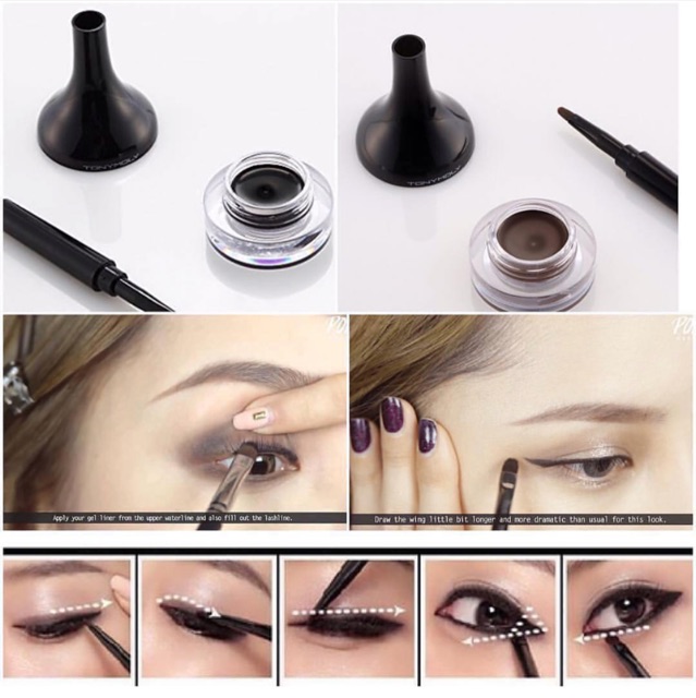Gel kẻ viền mắt dạng Gel giúp đôi mắt có đường viền sắc nét với độ bám dính cao, sản phẩm được dùng kèm với chổi kẻ viền mắt chuyên dụng. Đây là loại Eye Liner waterproof- chống thấm nước