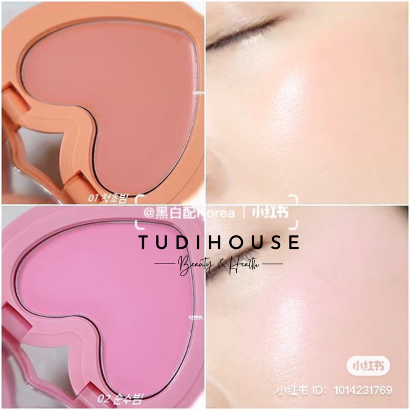 - Thiết kế xinh xắn, nhỏ gọn với hình trái tim có màu vỏ trùng với màu má hồng bên trong cho bạn dễ quan sát và lựa chọn.