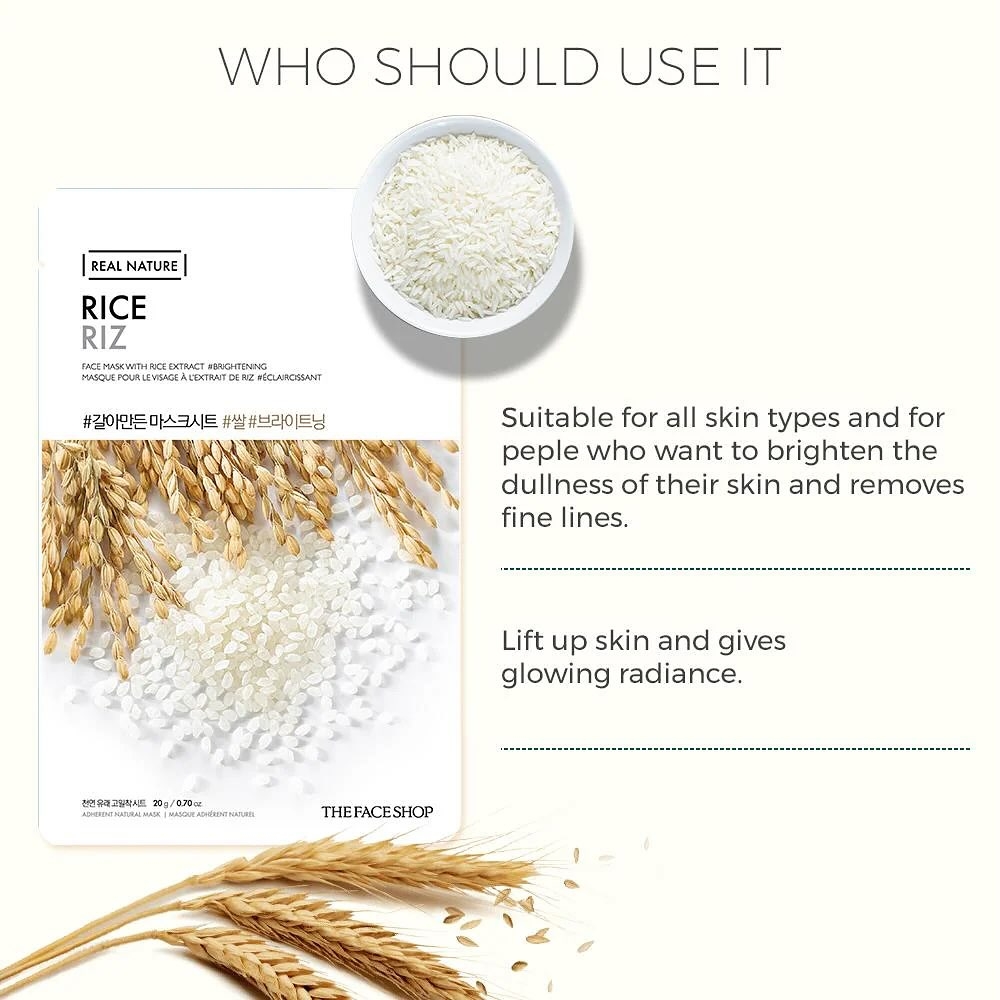 Mặt nạ dạng miếng cotton được chiết xuất từ gạo, giàu vitamin giúp dễ dàng làm sạch, tẩy tế bào ch.ế.t trên da. Cải thiện là da tối, đen, sạm, sắc tố không đồng đều, cho da sáng đẹp hơn.