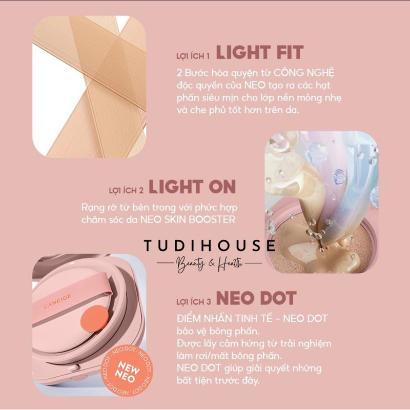 Phấn nước siêu nhẹ LANEIGE NEO CUSHION mang đến lớp trang điểm nhẹ tênh và bám trên da tốt hơn. Đây là lý do mà phấn nước mang đến lớp trang điểm trông hoàn hảo và không bị bết dính hoặc quá dày.