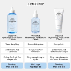 Serum Jumiso Tinh Chất Dưỡng Ẩm Jumiso Waterfull Hyaluronic Acid Serum là tinh chất dưỡng da thuộc thương hiệu Jumiso. Với 3 phức hợp HA giúp dưỡng ẩm thẩm thấu xuống các lớp biểu bì, mang đến làm da ẩm mịn, mềm mại và căng tràn sức sống. Đồng thời, có Ceramide NP giúp ngăn ngừa sự mất nước qua da, củng cố hàng rào bảo vệ da và hỗ trợ làm chậm quá trình lão hóa